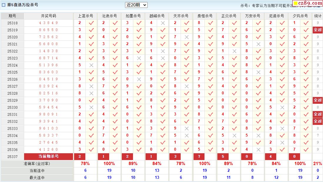 25年337期澳客专家体彩P5杀号定码推荐