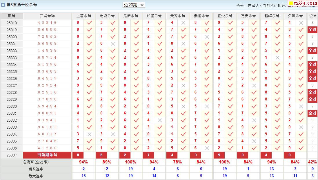 > 25年337期澳客专家体彩P5杀号定码推荐